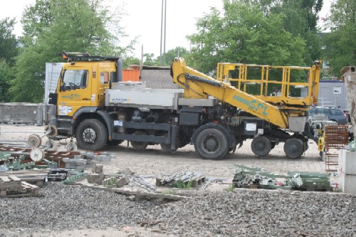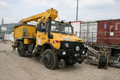 28.04.2009/ pz/ Zwei Zweiwege-Fahrzeuge dieses Unternehmens wurden auf einer Gleisbaustelle in Hamburg angetroffen.