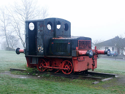 05.09.2007/ jm/ Auf der Wiese vor der Gesamtschule steht weiterhin die Deutz-Rangierlok (es soll FNr. 12621/1934, Typ OMZ117 R, sein) - leider völlig heruntergekommen und beschmiert. Es dürfte wohl nicht mehr lange dauern, bis die Lok hier entfernt wird.