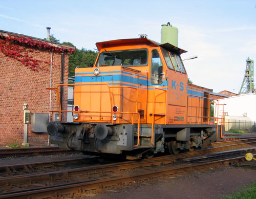 10.09.2004/ jm/ Am Abend stand die MaK-Einsatzlok beim Lokschuppen zwecks kurzer Pause (rangiert wird hier je nach Bedarf bis in die Nacht), die beiden KM-Maschinen wurden im Schuppen angetroffen.