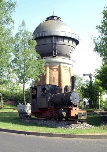 12.05.2006/ mk/ Das von den Eisenbahnfreunden Bebra aufgestellte Fahrzeug befand sich noch vor kurzem bei einer Baufirma in Bebra und ist jetzt fotogen beim Wasserturm (oberhalb des Güterbahnhofs) als Denkmal hingestellt worden. Um den Wasserturm ist ein 600 mm-Rundkurs aufgebaut