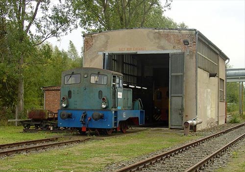 05.09.2007/ jm/ Im Lokschuppen steht eine blaue, modernisierte (Umgebaute) V60D (es dürfte sich um die LEW 15355/1976 handeln) und eine weitere zweiachsige Maschine. Ob es sich dabei um die Kaluga oder V22B oder eine ganz andere Lok handelt - und der Verbleib der dritten Lok - konnte nicht geklärt werden, da niemand angetroffen wurde.