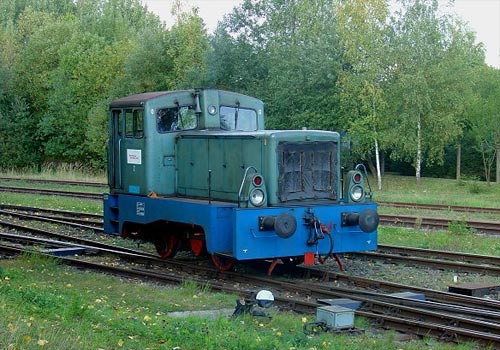 16.08.2006/ st/ Die sonst genutzte V22 hat(te) einen Defekt. Für den Autobahnbau werden hier hin und wieder Kieszüge zur Entladung in den Anschluß gefahren. Diese werden dann (nachts) rangiert, dies geschah letzte Woche mit der Kaluga! Deshalb stand sie draußen abgestellt, sonst steht sie immer im Schuppen. Außerdem war seit 2003 im Anschluß nichts mehr los, so daß beide Loks nur abgestellt im Lokschuppen standen.