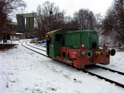 20.01.2004 / lh/ Die Harzer-Dolomit-Werke (HDW), direkt gegenüber dem Bahnhof Scharzfeld gelegen, produzieren nach wie vor munter vor sich hin. Auch die Werksbahn erfreut sich reger Betriebsamkeit. Im Winterhalbjahr wird von einem Privatunternehmen ein Ganzzug pro Woche zugestellt, mit Hilfe der Werklok beladen und am Samstag wieder abgeholt. Am Stichtag wurde die Einsatzlok (Deutz 56759/1957, Typ A6M517 R) dazu benutzt den Bahnübergang am Werk vom Schnee freizuräumen, damit der am nächsten Tag eintreffende (geschobene) Ganzzug entgleisungssicher ins Werk gebracht werden konnte. Die baugleiche Reservelok (Deutz 46963/1949, Typ A6M517 R) stand im Schuppen und wird noch gelegentlich ans Tageslicht geholt. Die Tatsache, dass der Lokführer selber Eisenbahnfreund ist wirkt sich sehr positiv auf den Besucher aus. Wenn ich mehr Zeit gehabt hätte, wären sicher noch mehr Fotos möglich gewesen, so blieb es bei ein paar Schnappschüssen am Bahnübergang...