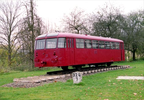 neu geliefert an Vorortbahn Wilhelmshaven "VT30" /1963-> Hümmlinger Krb T2" /1972-> EBOE - Elmshorn-Barmstedt-Oldesloer Eisenbahn /1976 VEV – Vorwohle-Emmerthaler-Verkehrsbetriebe GmbH /1983-> Privat (verwendet als Gartenlaube) /.... Denkmal, Bahnhofstraße, Boffzen (11.2005 vh)