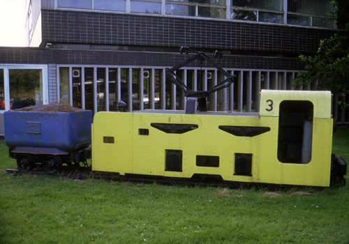 26.08.2003-info/ pz/ Als Denkmal wurde eine Grubenlok Baujahr 1942 von Siemens aufgestellt. Die Lok war 1994 noch vorhanden.