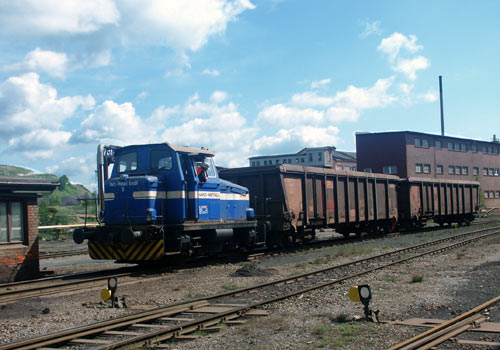 24.05.2006/ jm/ Früher waren hier Dampflokomotiven und auch Feuerlose Dampfloks im Einsatz, dieses endete aber Anfang der 1970er Jahre. Mittlerweile ist das Werk auch nur noch als Recyclingbetrieb für Batterien und Autokarosserien tätig, so dass statt einst 3000 jetzt hier nur noch rund 140 Beschäftige gibt. Ebenfalls Vergangenheit ist die Zahnradbahn, welche von diesem Werk aus hinunter in den Ort führte. Vorhanden, aber nicht mehr genutzt, ist die Steilstrecke beim Bahnhof Oker hinauf in westlicher Richtung. Diese wird aber nicht mehr genutzt
