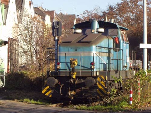 09.12.2004/ ha/ Bei Vallourec & Mannesmann Tubes (ehem. Mannesmann Röhrenwerk) in Düsseldorf-Rath konnte am Bahnübergang deren Lok D 3 "erwischt" werden. Die Identität der Lok ist nicht ganz klar.