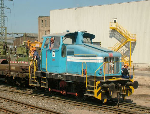 05.08.2005/ ha/ Beim Versuch eine Henkel-Werklok am Bü Henkelstrasse zu sichten, konnte über die Werkmauer von Vallourec-Mannesmann, Rohrwerk Reisholz, eine blaue Werklok im Einsatz gesehen werden. Dem Anschein nach eine Henschel-Lok (wie bei V&M, Werk Rath) - näheres nicht bekannt oder gefunden. Zuletzt hier bekannt ist Henschel Fnr. 30334, die könnte es sein (muss aber nicht).