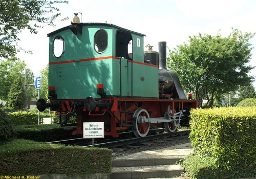 26.07.2003/ ms/ jm/ Die Denkmallok wurde erst vor kurzem äusserlich aufgearbeitet und neu lackiert. Sie trägt ein Hohenzollern-Fabrikschild mit der Nummer 8650/1919, welches aber nicht die Fabriknummer ist (beim Nachguss ist aus der 3 ist eine 8 geworden).