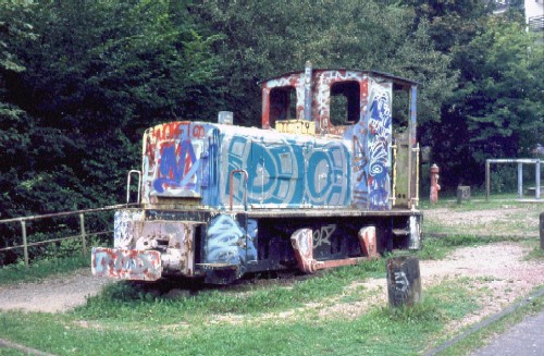 15.07.2003-info/ pz/ Eine Feldbahnlok von Deutz Baujahr 1960 steht seit etlichen Jahren auf dem Spielplatz. Sie war nur 10 Jahre im Einsatz...