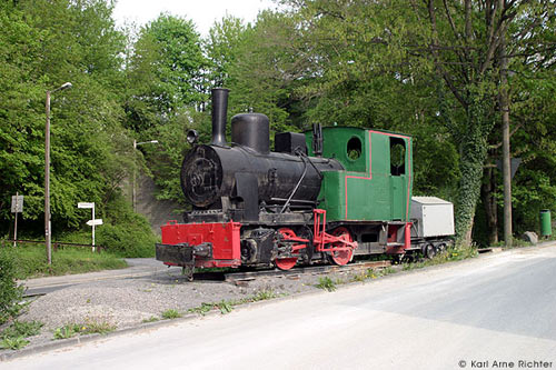 15.07.2003-info/ pz/ 25.04.2004/ ri/ Eine der einst hier eingesetzten Feldbahn-Dampflokomotiven wurde als Denkmal aufgestellt.