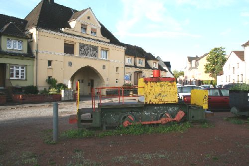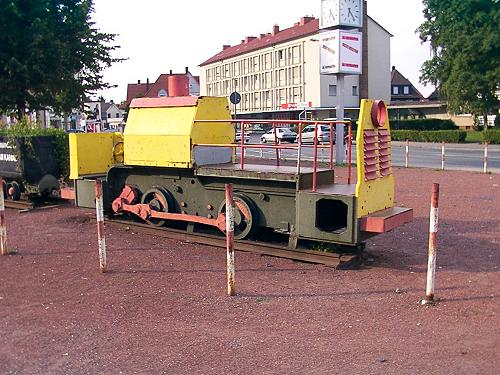 28.07.2003/ ms/ jm/ Der Grubenlok, die man hier aufgestellt hat, fehlt mittlerweile ein Teil des Vorbaus. An der Lok sind keine Schilder mehr, es soll sich aber um die Deutz FNr. 46923 folgende handeln.