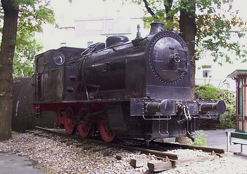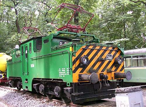 28.07.2003/ ms/ jm/ Hinter dem Gebäude (eine ehemalige Schule) stehen unter Bäumen mehrere Lokomotiven und Straßenbahnwagen. Nicht gefunden wurde die Preßluft-Grubenlok von DEMAG (FNr. 2200/1938). Wo stand/steht diese? Bisher nicht in den Listen für dieses Museum stand die vorgefundene EH 346, eine Zweikraftlokomotive von Jung.