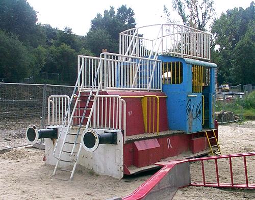 28.07.2003/ ms/ jm/ Der Spielplatz ist derzeit teilweise wegen Bauarbeiten gesperrt. Die Lok ist aber weiterhin vorhanden. Die Identität konnte an der Lok selber nicht festgestellt werden. Es soll sich um eine O&K, FNr. 25393/1954, Typ MV4a, handeln.