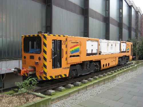 Bergbaumuseum Bochum: Denkmal vor dem Museum: DEMAG-Pressluftlokomotive FNr. 1993/1943. (Foto: 20.04.2008 - Martin Welzel)