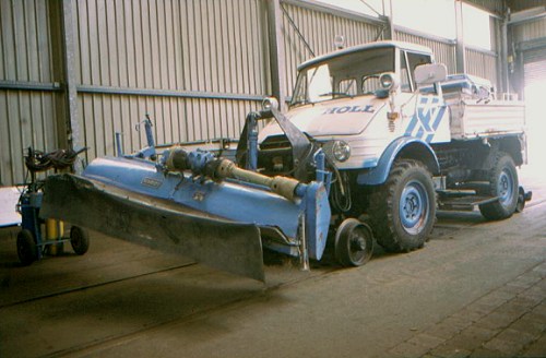 23.04.2004/ ms/ jm/ Da hier die Rangierarbeiten jetzt auch durch DB-Cargo durchgeführt werden, wurde der Zweiwege-Unimog Ende 2003 über das Internet an einen Unimog-Händler verkauft.