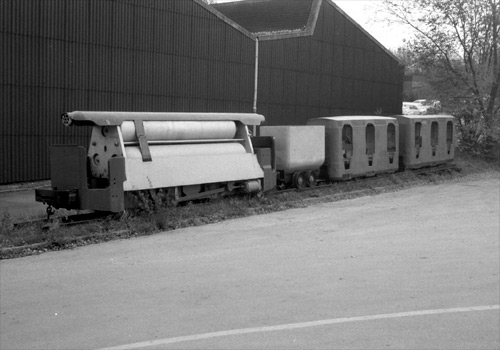 Franz Straten: Die DEMAG-Grubenlok als Denkmal, aufgenommen im November 1988 von Peter Ziegenfuß.