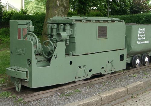 12.05.2013/ jl/ Die Akkulok steht in ordentlichem Zustand am Rande der Denkmal-geschützten Bergarbeitersiedlung und hat lediglich etwas Patina angesetzt.