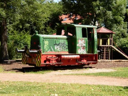 05.12.2004/ ju/ Die Stadt Gladbeck hat Anfang November die Spielplatzlok an der Mozartstraße entfernen lassen. Nach Aussage eines Anwohners wurde die Lok beim Abtransport "zerteilt", eine Verschrottung ist also wahrscheinlich.