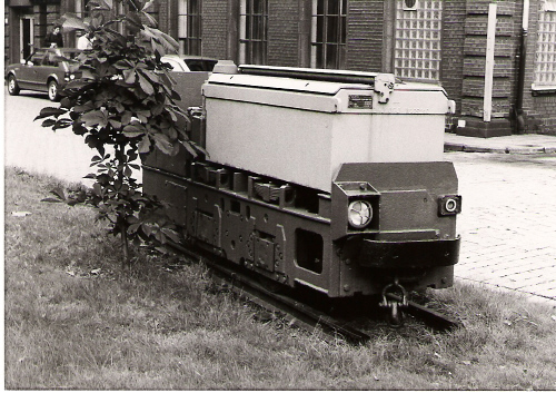 02.03.2009-info/ pz/ Vor dem Förderturm der ehemaligen Schachtanlage stand 1992 eine zweiachsige Gruben - Akku - Lokomotive.