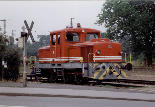 Stadtwerke Emmerich: Die Lok Nr. 6 noch in den typischen Jung-Farben. (Foto: 16.02.1991, Gerard Hahn)