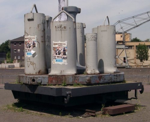 26.06.2003/ ju/ Am Stadtmuseum am Johannes Corputuis Platz trifft man auf einen Kokillentransportwagen der Hütte Krupp-Mannesmann, der hier als Denkmal steht.