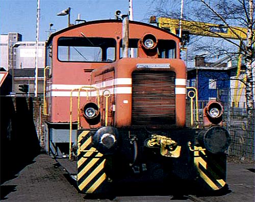 PWP, JR, fg, 02.03.2002/ fg 21.07.2003/ DS 84, DS 159/ Das Kohlekraftwerk an der Walzenstr. setzt für den Verschub von Kohlewagen eine kleine Diesellok ein. Ebenfalls vorhanden ist eine Minilok zu Reservezwecken.