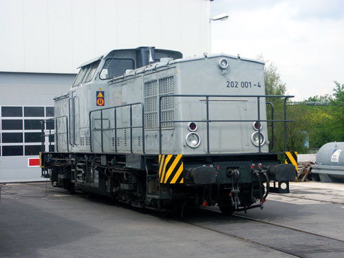 12.06.2006-info/ mw/ Die 202 001 (ex 202 778 LEW 14659/75) hat einen Vorgänger gleicher Nummer (Leihlok von Alstom-Stendal), die LEW 14447/74 (ex 202 746) .