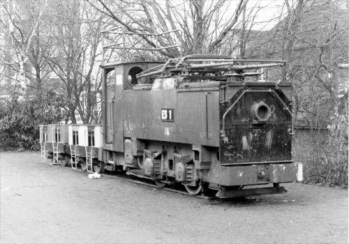 Spielplatz: Die Spielplatzlok ES 1 noch ohne Rutsche, aber mit Stromabnehmern. (Foto: 23.12.1990, Frank Glaubitz