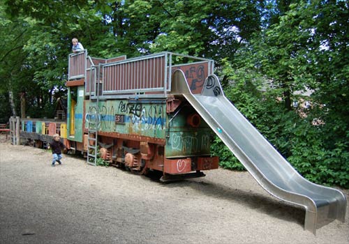 Spielplatz: Die Spielplatzlok ES 1 mit Rutsche. (Foto: 05.06.2006, Hans-Peter Gladtfeld)