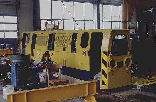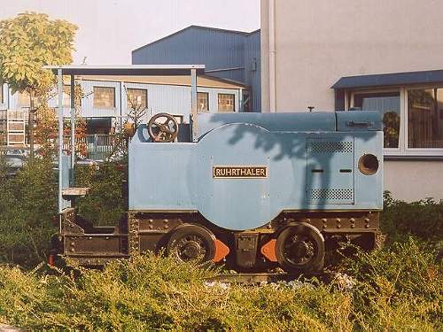 12.05.2000/ jm/ Dieses Unternehmen, welches Ruhrthaler und Bedia übernommen hat, setzt den Lokbau in Moers fort. Letztes Jahr entstanden zwei Akku-Grubenlokomotiven der Bedia-SIG-Bauart, dieses Jahr wird die Wiesel-Serie fortgesetzt. Der Typ Wiesel ist ein richtiger "Erfolgs-Renner", wurden doch in nur drei Jahren 16 Exemplare gebaut. In der Werkshalle steht gerade eine Lok für Russland vor der Abnahme, die Rahmen weiterer drei Wiesel sind bereits fertiggestellt. Desweiteren waren drei Akku-Lokomotiven zur Aufarbeitung vorhanden (darunter Bedia 327), vor der Halle steht die Dolores (Bedia 350), eine Deutz G90 und die Reste einer weiteren Bedia. Im Vorgarten wurde die älteste erhaltene Ruhrthaler-Lok, die FNr. 41, als Denkmal aufgestellt. Neben den Lokomotiven baut man auch weiterhin Dieselkatzen.