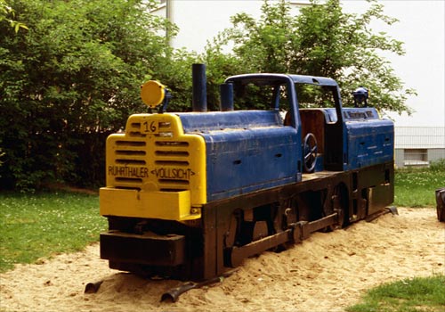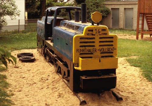 27.05.2004/ uv/ 15.05.2006/ mw/ Am Kindergarten Birkenstraße in Neukirchen-Vluyn ist die Lok Ruhrtaler FNr. 3399/1956 immer noch vorhanden.