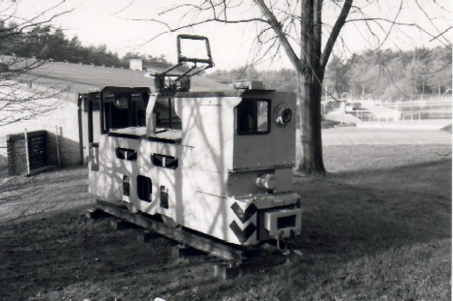 22.05.2005-info/ pz/ Eine elektrische Untertage-Grubenlok ist als Spielgerät vorhanden. Die Lok stammt von der Ruhrkohle AG - Zeche Friedrich-Heinrich, Kamp-Lintfort. Der Hersteller ist nicht bekannt.