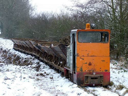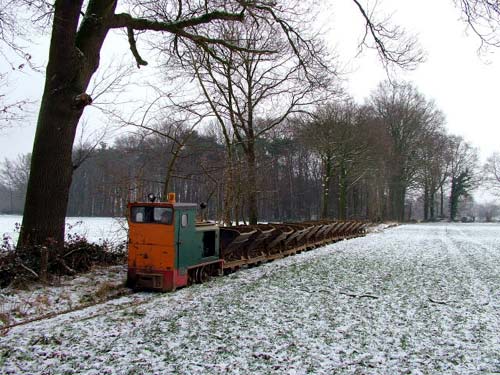 29.12.2005/ sk/ Eigentlich wollte ich nur mal schauen, ob der Betrieb hier auch im Herbst und Winter weitergegangen ist, da fielen mir Spuren im Schnee auf, und kurz danach war dann tatsächlich der Zug auf dem Weg durch den Schneefall zur Grube zu sehen! Gegenüber dem Besuch im August fiel war die Strecke außerdem (und zwar nicht nur durch den Jahreszeitenwechsel) deutlich weniger verkrautet, sodaß der Zug um einiges schneller von der Stelle kam. Der Abbau in der Grube ist mittlerweile um weitere ca. 100 m vorangeschritten, etwa gleich viel ist noch übrig. Nach Aussage des Lok- und Baggerführers dürfte die Grube bei dem derzeitigen Abbaufortschritt (es wird fast täglich gefahren!) spätestens im Sommer, wahrscheinlich schon im Frühjahr 2006, erschöpft sein - und dann wird wohl endgültig Schluß mit der Feldbahn sein, da schon heute der Ton aus entfernteren Gruben per Lkw zum Werk gefahren wird...