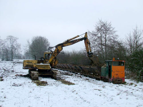 Iking: An der Grube steigt der Lokführer dann in den Bagger um und beläd die Kipploren. (Foto: 29.12.2005, Stefan Kunzmann)