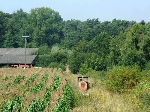 30.07.2006/ lh/ Eine Stippvisite am Wochenende ergab folgendes Bild: die seit 1994 im Abbau befindliche Tongrube ist aufgegeben worden. Im ehemaligen Abbaugelände breitet sich ein Maisfeld aus. Die Gleise sind bis an den Grubenrand zurückgebaut worden. Dort steht auch der Hydraulikbagger abgestellt. Der Rest der Strecke liegt augenscheinlich noch, ist aber stark zugewachsen.