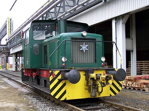 Heute werden für den schienengebundenen Werksverkehr zwei Lokomotiven und ein Rangiergerät vorgehalten, leider war bei unserem Besuch kein Lokführer mehr zugegen, der wenigstens eine Lok hätte rausfahren können.