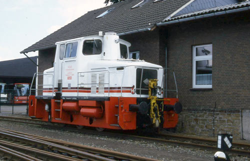 22.06.2000/ stw/ Hier war bereits Betriebsruhe, hinter dem Rolltor war eine der V60 auszumachen. Die Lok "5" hatten wir bereits bei Karmann gesehen.