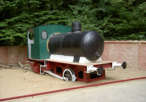 11.05.2006/ jm/ Im Zoo-Gelände steht eine Feuerlose Dampflok als Denkmal, die Lok zeigt sich äußerlich bestens aufgearbeitet. Man kann die Lok auch von aussen sehen (oben auf dem Berg im Wald), Fotos sind da aber nicht so prickelnd (ob man allerdings statt dessen 10 Euro Eintritt zahlen möchte, sollte jeder selber entscheiden).