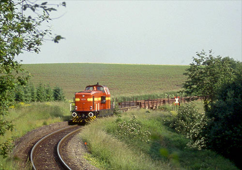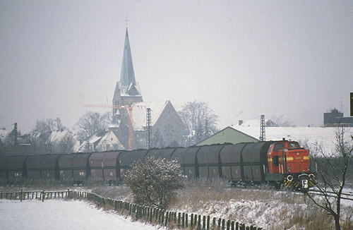 Georgsmarienhütte: Lok Nr. 1 (Deutz FNr. 57801) mit einem Kokszug zur Hütte bei Hasbergen. Den Streckendienst hat mittlerweile Railion übernommen. (Foto: Gerd Hahn)