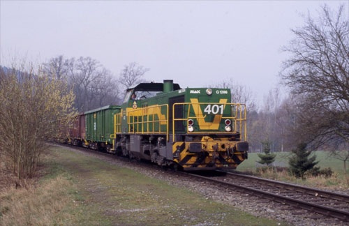 Georgsmarienhütte: Lok 401 der Dortmunder Eisenbahn bringt Schrott zur Hütte. (Foto: 18.03.2004, Gerd Hahn)