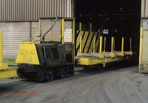 Georgsmarienhütte: Lok Nr. 5 (Deutz FNr. 57805) vor dem Stahlwerk, aufgenommen am 21. Februar 1989. (Foto: Gerd Hahn)