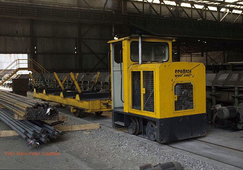 24.01.2006-info/ gh/ Heute ist der einst umfangreiche Lokbestand auf wenige Maschinen zusammengeschmolzen. Es sind aber nach wie vor dreiachsige Deutz Lokomotiven im Einsatz. Die große Streckenlok, GME 1, und weitere kleine Loks wurden seinerzeit an die inzwischen insolvente KEG verkauft. Der heutige Streckendienst zwischen Hasbergen und Georgsmarienhütte wird von Railion abgewickelt und endet im Verschiebebahnhof Georgsmarienhütte.