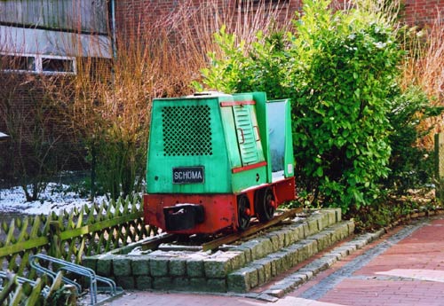 12.07.2004/ uv/ 12.03.2006/ rk/ Hier steht unverändert seit 1995 eine Schöma-Feldbahnlok als Denkmal.