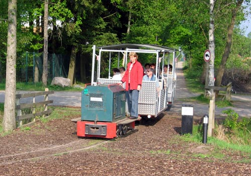15.05.2006/ jm/ Gegen 16:30 Uhr (wenn auf der Wübbeler- und der Böske-Strecke nichts mehr fährt) setzte sich heute ein Zug in Bewegung, er traf nach 1,5 Stunden wieder im NIZ ein. Zwei Maschinen sind einsatzbereit, eine dritte (Eigenbau) steht im Gelände abgestellt. Letztes Jahr war eine weitere Lok vorhanden, diese war aber nur ausgeliehen (da wohl eine eigene Lok nicht einsetzbar war) und ist nicht mehr da.