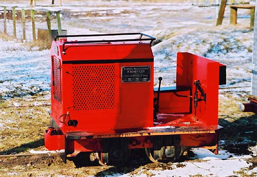 19.02.2004-info/ dr/ Bei dem beschriebenen Eigenbau handelt es sich um einen echten Strüver, Baujahr so zwischen 1948 und 1950. Ca. so um 1955 sollte daraus eine Vorstechermaschine für den Torf gebaut werden .Die Maschine war aber einfach zu leicht und zu kippelig. Ausserdem musste ca. 1956/1957 der Motor durchrepariert werden. Das wurde seinerzeit von Herrn Gerlach ausgeführt, der dann kurz nach dieser Reparatur in die Firma Wübbeler eintrat. So um 1966/1967 holte er den (noch) normalen Strüver aus der Ecke hervor und baute vor den bis Heute erhaltenen echten beiden Strüver-Rahmenenden (vorne und hinten) ein kurzes Stück von einem Torflorenrahmen davor, der in der Höhe zu den dort verwendeten Loren passte. Ausserdem veränderte er den Achsabstand, um auch die zweite Achse mit einer Bremse versehen zu können. Die originalen Strüverachsen sind noch immer unter dem etwas veränderten Fahrgestell montiert. Auch das originale Fahrgetriebe ist erhalten geblieben. Alle wichtigen Teile für einen Rückbau sind also vorhanden. Herr Gerlach ist 1991 in den wohlverdienten Ruhestand gegangen.