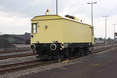 20.08.2008/ gh/ Leider waren alle Lokomotiven abgestellt. Lok 101 stand als Unfalllok im Lokschuppen. Lok 102 stand im Bunker. Lediglich draußen präsentierte sich einigermaßen fotogen Windhoff Nr. 260052 Bj. 1987. Die Windhoff-Lok dürfte nur wenigen Eisenbahnfreunden bekannt sein, da sie nur im hinteren Teil der Grube beim Verschub eingesetzt wird. Interessant zu wissen ist auch, dass nur noch vormittags und nachts gefahren wird. Die Spätschicht wird nicht bedient. D.h. wer die Loks auf Strecke erleben will, muss es also wochentags vormittag probieren. Einen festen Fahrplan gibt es aber nicht.