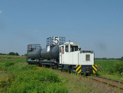 Auf dem in Spitzenzeiten bis zu 140 km langen Gleisnetz, wovon heute noch ca. 120 km betrieben werden, gibt es sehr unterschiedliches Wagenmaterial - z.B. Kesselwagen, Schwertieflader (übrigens mit Schöma-Drehgestellen!), Spezialwagen für den Gleisbau, Werkzeugwagen, Gestängetransporter, ganze (ausziehbare) Bohrtürme, sowie auch rollende Büro-, Aufenthalts- und Sanitärcontainer. Zumeist reichen die Lokomotiven der unteren Leistungsklassen für diese Transporte aus, allerdings hat man im vergangenen Jahr speziell für die Wasserdampftransporte eine deutlich größere Lokomotive beschafft. Diese Transporte werden mit zwei großen Kesselwagen bewerkstelligt, deren Fassungsvermögen je 16 m3 beträgt.