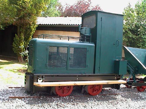 07.07.2005/ cp/ Im Hof gibt es eine restaurierte Feldbahnanlage bestehend aus einer Schöma-Feldbahnlok und drei Feldbahnwagen. Die Spurweite der Lok weicht allerdings von der der Wagen mit 900 mm etwas ab. Die Lok stammt von Klasmann-Deilmann.