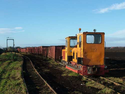 niederländischen Grenze bei Zwartemeer, zu beobachten: Auf dem ringförmigen Verladegleis stand die Lok 24 mit einigen Bau-, aber deutlich mehr wohl frisch entladenen Torfloren.
